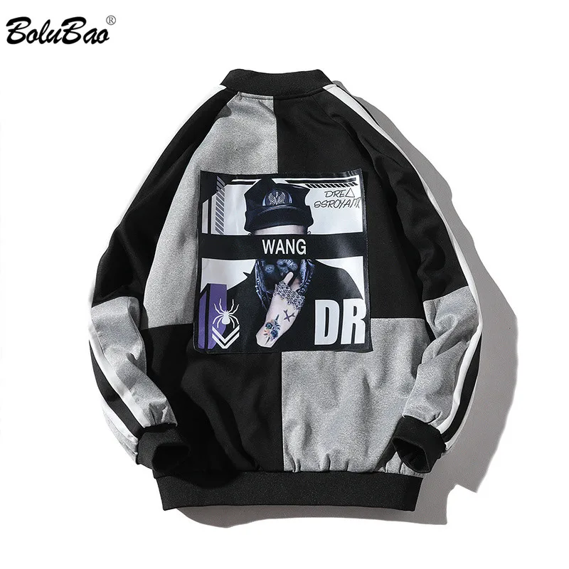 صور من BOLUBAO أزياء الشارع نمط سترة الرجال الخريف الذكور الهيب هوب الطباعة خياطة الهيب هوب سترة معطف رجالي