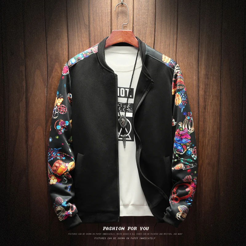 وانت enشراء Jackets, luego الأزهار منفذها سترة الرجال خليط الزهور طويل كم زيبر الستر معطف الرجال الطيار سترة زائد حجم M-5XL tal vez introducir appeal