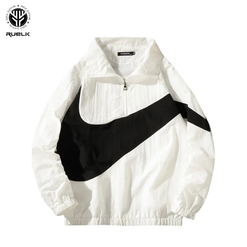 معرض من RUELK رجل جاكيتات الهيب هوب أبلى الخريف الأزياء ضرب اللون عارضة الشارع الشهير الذكور رقيقة سترة معطف الربيع الشارع الشهير Vinta