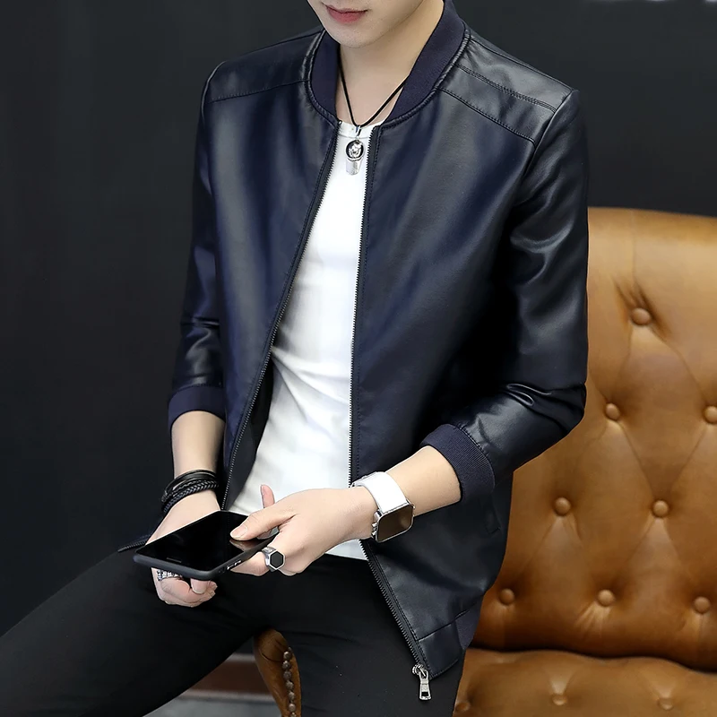 أرغب في شراءمعلومات اضافية 2019 الربيع والخريف جديد سترة جلدية الرجال عارضة رقيقة القسم طوق سترة جلدية دراجة نارية الرياضة سترة جلدية الرجال المرأة